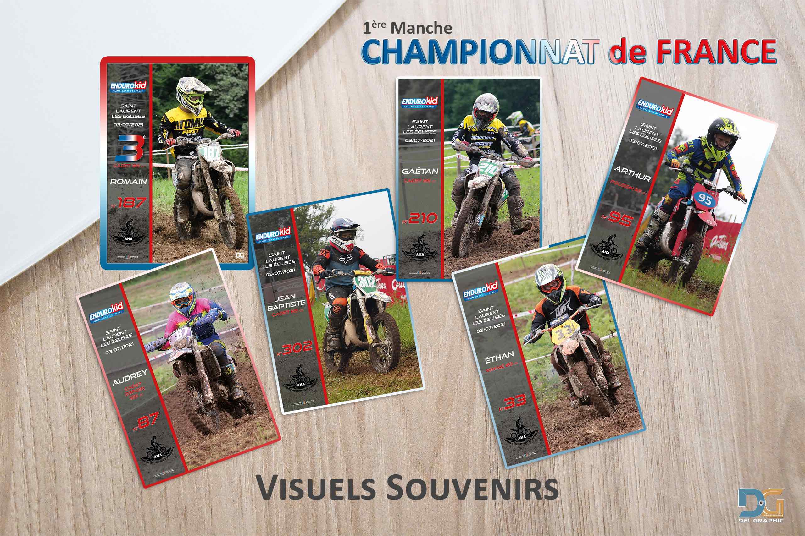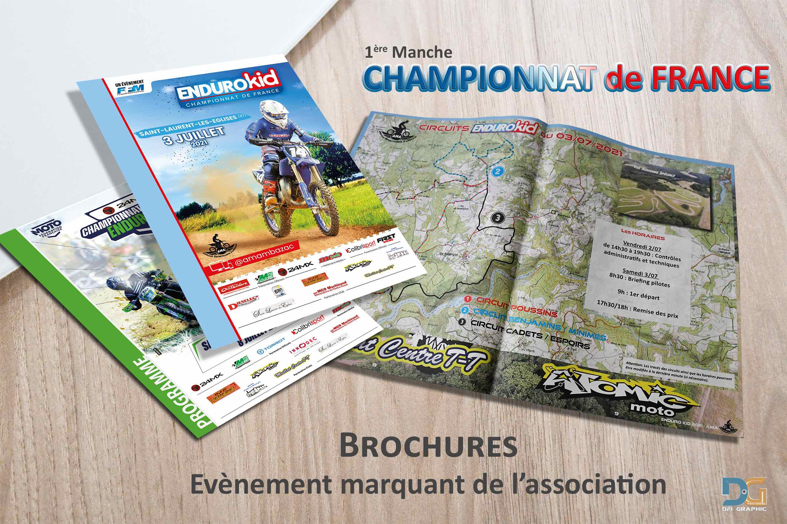 Création de brochures (programmes) pour les premières manches du Championnat de France d'Enduro Kid. Organisées par l'Amicale Moto d'Ambazac (AMA).