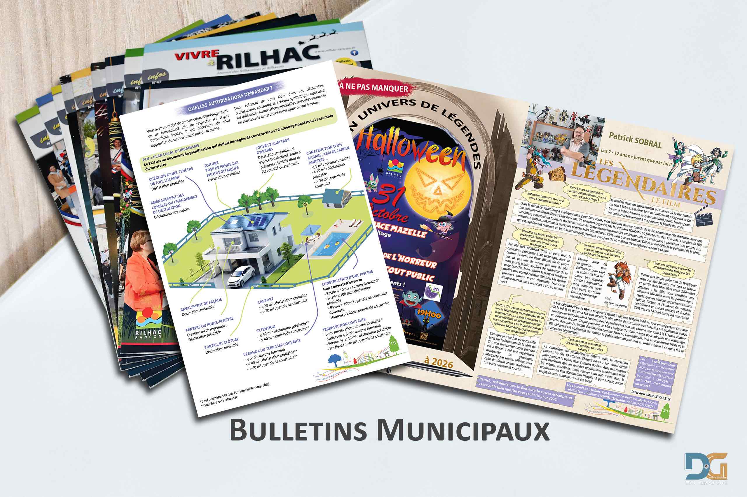 Conception graphique de bulletins municipaux pour la commune de Rilhac-Rancon (tirage à 2500 exemplaires). Entièrement sur mesure pour donner envie aux lecteurs de le parcourir.