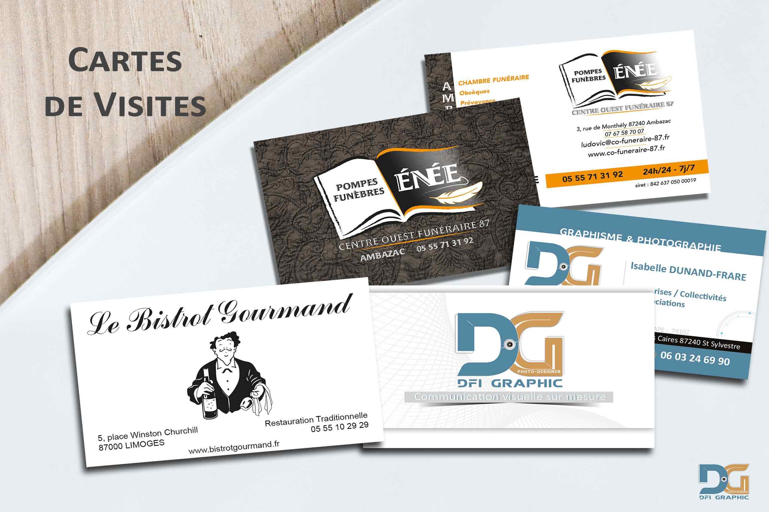 Création de nouvelles cartes de visites avec finition Soft-Touch et vernis 3D pour certains en monochrome pour d'autres.